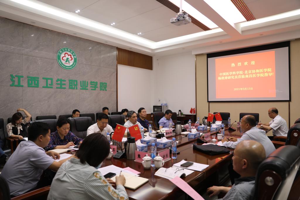5月15日,中国医学科学院、北京协和医学院发展规划处处长杨俊涛来到澳门pg官方电子平台小蓝校区,调研指导澳门pg官方电子平台发展规划相关工作。省卫生健康委发展规划处处长,澳门pg官方电子平台党委委员、副校长操秋阳,澳门pg官方电子平台党委委员、副校长胡振宇、潘星星、赖国文及学院相关部门负责人陪同调研并参与座谈交流。