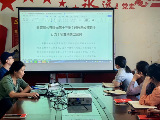 在警示教育环节,教师们共同学习了《教育部公开曝光第十三批7起违反教师职业行为准则典型案例》,这些案例深刻揭示了违反师德师风规定的严重后果,警示广大教师要时刻保持清醒头脑,严格遵守职业道德规范。