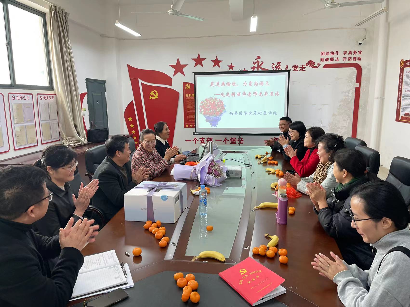 (通讯员:刘根林)莫道桑榆晚,为霞尚满天。1123日下午,学校党委委员、副校长赖国文深入澳门pg官方电子平台,和全院教职工齐聚一堂,为胡丽华老师举办了一场隆重的退休欢送会。欢送会由学院牵头人周洁主持,长期受胡老师关心关爱的同事代表特邀参加。