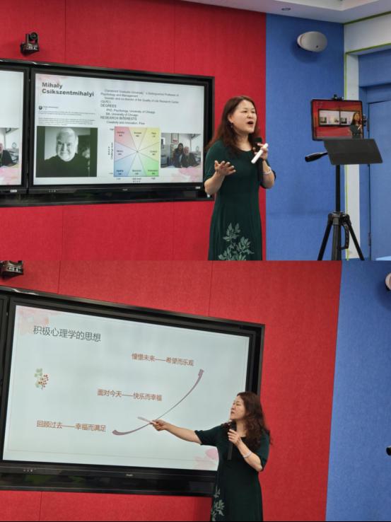 讲座中,李力教授深入浅出地介绍了积极心理学的概念、发展历程,并结合时代发展背景,阐述了积极心理学如何关注并回应新时代人们对心理需求的转变,为平凡而不普通的人群提供了应对生活压力的有效方法。为了让大家更直观地感受积极心理学的魅力,李力教授精心设计了心理游戏互动环节,现场教师积极参与,在轻松愉快的氛围中深刻体会到了积极心理学的实际应用。