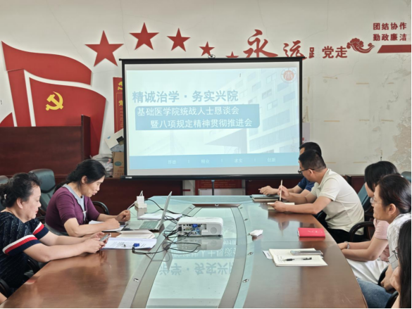 5月20日下午,澳门pg官方电子平台组织召开“精诚治学・务实兴院”统战人士座谈会暨八项规定精神贯彻推进会,3位无党派人士及6位党外知识分子参会,学院党支部副书记周洁主持会议并讲话。