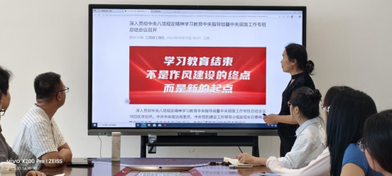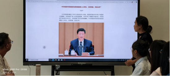 随后,全体党员共同学习《求是》杂志发表的习近平总书记重要文章《中华民族共同体的形成和发展是人心所向、大势所趋、历史必然》,通过研讨深入剖析文章内涵,进一步明晰中华民族共同体的历史脉络与时代意义,不少党员认真记录感悟要点。此外,会议还专题传达了深入贯彻中央八项规定精神学习教育相关总结会议精神,周洁结合学院实际情况,强调需将作风建设要求融入日常教学、科研与管理工作中,筑牢廉洁从教的思想防线。