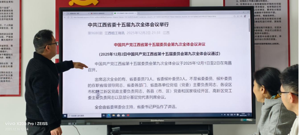 活动中,党支部书记王旺带领全体党员重点学习了习近平总书记考察江西重要讲话精神,引导党员深刻领会讲话中蕴含的战略考量和实践要求,结合医学教育和科研工作实际,思考如何在服务发展大局中贡献智慧与力量。会议同时专题学习了省委十五届九次全体会议精神,深入理解省委关于推动高质量发展、加强党的建设的部署要求,进一步统一思想、凝聚共识。